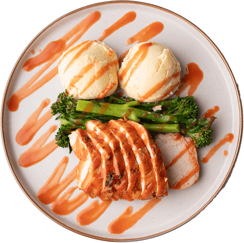Cajun blackened chicken with creamy mash potatoes and tenderstem broccoli
